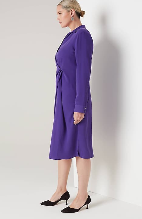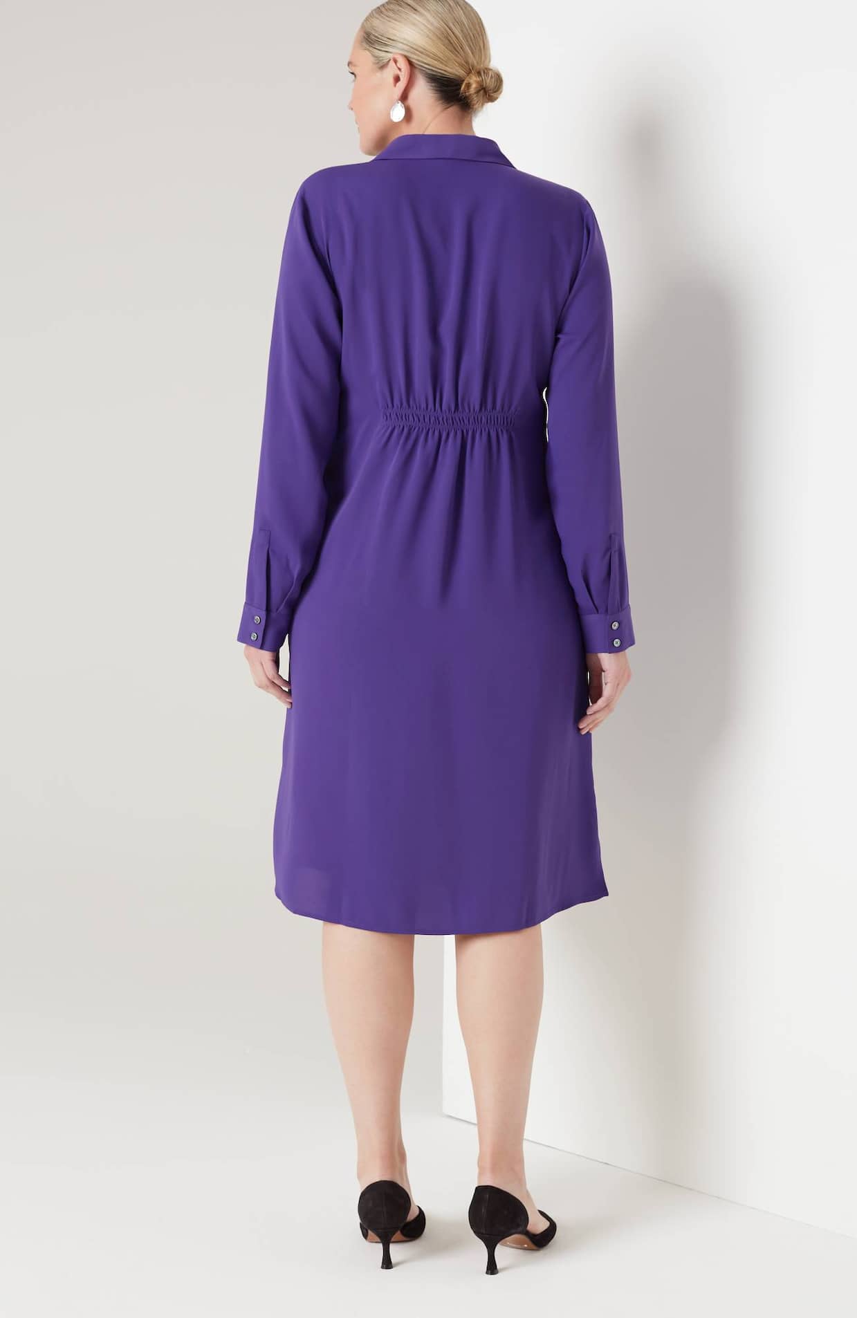 The shirtdress, with a twist. It has all your favorite features, including functional sleeve cuffs with mother-of-pearl buttons. A smocked back adds extra definition to the waist.